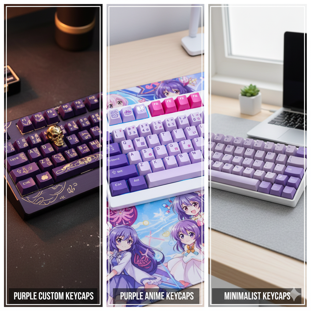 Purple Custom, Anime, and Minimalist Keycaps